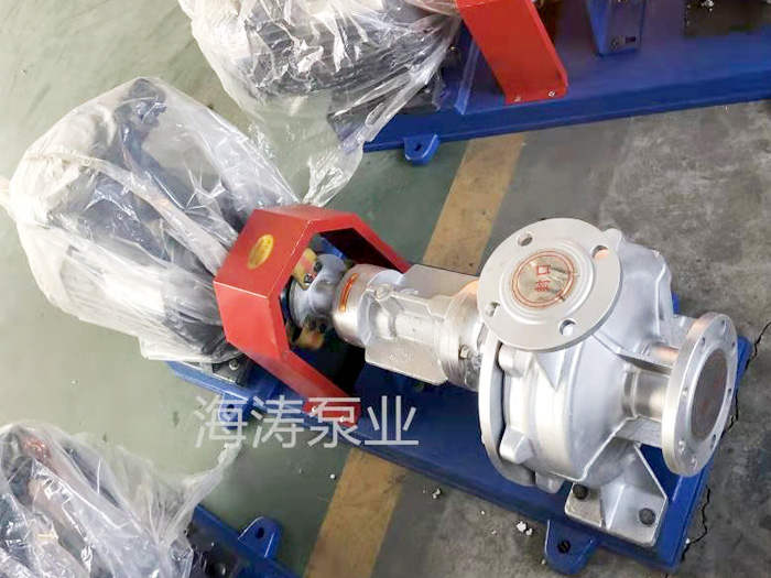 海涛工作人员所设计的RY导热油泵主要是由壳体、转子等部分零件组成,还采用填料密封结构,附加耐温油封,起辅助密封的作用。导热油泵与电动机采用三爪型弹性联轴器联接,高温导热油泵为单级悬臂式结构分为脚支撑和支撑,泵的 为轴向吸入,出口为垂直向上。泵和驱动电机通过弹性联轴器合装于同一底座上。整个机组无需加冷系统。
